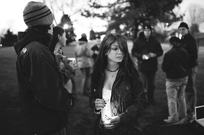 照片:美国弗吉尼亚理工大学发生枪击事件的当晚,学生们点燃蜡烛悼念死难同窗。国新摄