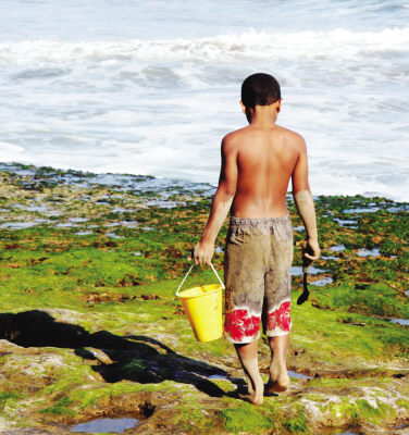 我父母是大连人,多次听他们说起过小时候去海边赶海的往事。想像中,那定是美妙的。在美国旧金山的圣克鲁斯,这个小男孩,提着小桶,低着头在长满苔藓的海边找寻的样子,让我不无感触。赶海的孩子,不知道自己能找到什么,回家时,手中的小桶也不知能否装满,但听着海涛,沐浴着阳光,一路寻觅……赶海本身就是收获。