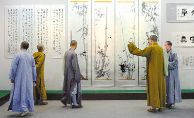 4月21日上午,由著名画僧慧禅法师(史国量)等艺术家无偿捐赠的近百幅艺术作品在河北文学馆内进行义卖,为“河北省农村特困大病患儿救助金”筹集善款。本报记者晋永权摄