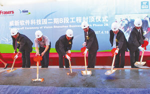 4月18日,深圳威新软件科技园二期B段工程举行封顶仪式。据投资方星狮地产(中国)有限公司介绍,二期B段工程总建筑面积约为8.8万平方米,全部按照国际研发空间标准设计建立,内部设施再次提升,达到国际研发企业要求。