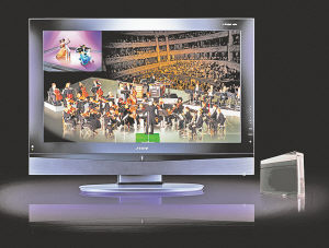 在传统彩电制造商纷纷对平板电视降价抢市场之际,出身IT厂家的清华同方4月16日在北京推出了其2007年最新的二十余款数字电视产品。清华同方目前在沈阳建有国内最大的数字电视生产基地,其背靠的清华大学研究的数字地面传输标准也于去年8月被国家采纳构建了DMB-TH国家标准。图为清华同方开发的具有可录功能的B56系列高清电视。(滕兴才)