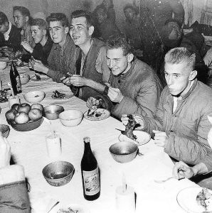 为尊重欧美战俘的风俗习惯,1951年12月25日,中国志愿军专门给他们过圣诞节。菜单上写着炸鸡、土豆泥、牛排等。