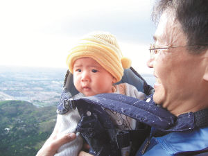 5个月的妞妞是乘坐着父亲登上香山的。4月21日早上8时,我在香山山顶遇见了这位年轻的登山者。在我每周爬香山12年的经历中,见过盲人,腿脚残疾的人,但是像这样年幼的登顶者还是第一次遇到。孩子的父亲说,这已经是她第二次登上香山山顶了,上一次是在它3个月的时候,这就是说在春寒料峭的二月,这孩子已经上过山了。