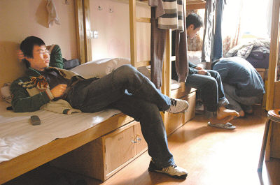 已经找到工作的MBA学生梁艳一边做面膜,一边与同学在寝室里聊天。