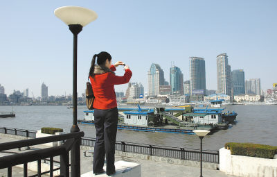宋慧来到黄浦江边用手机拍下眼前的美景。