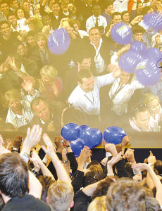 5月6日,人民运动联盟主席萨科齐的支持者在巴黎集会庆祝大选获胜。根据法国内政部7日凌晨公布的总统选举第二轮投票最终结果,萨科齐以53.06%的得票率当选新一任法国总统。