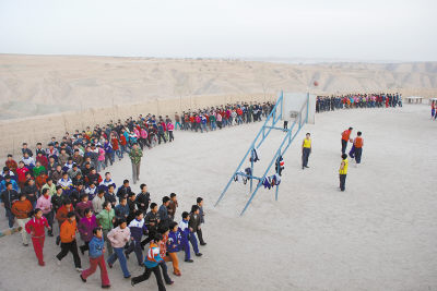 因陋就简,新庄中学顺山坡修建的下沉式操场,成了1000多名同学的乐土。