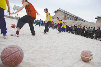 和水一样,学校的教育教学设施也是极其紧缺。一副篮球架,8个篮球,8个排球,没有足球,没有足球场,没有单双杠。15个乒乓球案,全都是用水泥板垒起来的“硬货”,两块砖头上架一根木棍,便是球网。