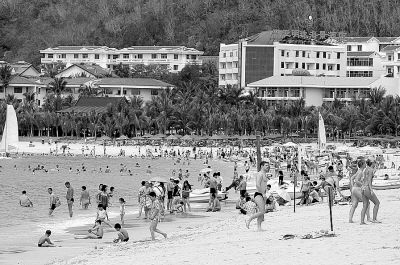 照片:2007年5月3日,海南三亚沙滩上的游人如织,“五一”黄金周旅游开始达到高峰。孙清摄