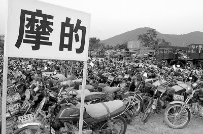 照片:2005年12月22日,海南省三亚市交通局一停车场内停满了报废车和黑车。海南省严厉打击旅游市场“黑社”、“黑导”、“黑店”、“黑车”等“四黑”现象,以规范海南旅游市场。(资料照片)童国强摄