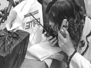 5月20日,2007年辽宁成人本科生学士学位外语考试大连一考场的操场外,一女士一边用手机接收考试答案,一边将答案利用对讲机传达到考场内。据了解,在各类成人考试中,利用对讲机等现代传输手段向考场内传送答案,在全国时有发生。