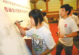 |        本报北京5月25日电(记者鄢光哲)由中国青年报社主办、山东威海西霞口集团冠名支持,第二届中国青年喜爱的旅游目的地评选活动—“西霞口·2007中国青年喜爱的旅游目的地”评选活动今天启动。    今年的活动主题为“文明旅游”。活动期间,本报将组织正在筹建中的“全国大学生文明旅游实践营”,对海选阶段上榜的部分旅游城市和景区景点进行暗访并按有关规则打分,分数将成为活动决赛阶段的重要参考之一。中国青年报社、中青在线、SOHU网等将对活动进行全程跟踪报道。    据中国青年报社党组书记王宏猷介绍,该活动今年仍坚持百分之百的民意和百分之百的社会公益性,继续“寻找适合年轻人的行走”。“活动要寻找的,是那些符合青年人出行需求及特点,受到青年旅游者喜爱,并在管理上充分体现出文明气象的旅游城市和景区景点”。    活动前期,本报将通过报纸和网络,向广大青年读者征集文明旅游城市和景区景点的评选标准。城市安全、市容市貌、公共信息服务、当地人友好程度及景区景点的整体环境、住宿条件等符合青年人出行特点的标准,最终成为活动的评选标准。    国家旅游局新闻处处长张栋代表中国国家旅游局综合司对该活动表示祝贺。    西霞口集团负责人表示,之所以支持本次活动,正是看重本次活动的公益性和百分之百体现民意这两个主要特点。    20所高校的34个大学生社团代表参加启动仪式,并在本报发出的《文明旅游倡议》上签名,成为《文明旅游倡议》的首批响应者。    照片:大学生社团代表在本报发出的《文明旅游倡议》上签名。本报记者 李建泉摄     |