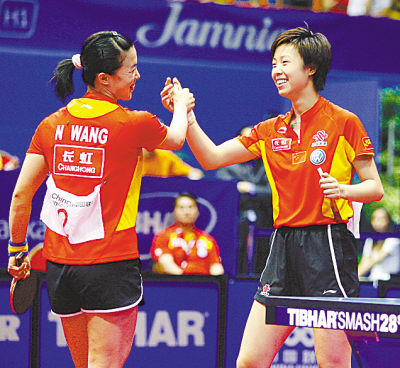 |        8年了,在王楠和张怡宁之外,中国女乒有了一位新的世界冠军——今年7月才年满19岁的郭跃。    在这支王者之师中,名将云集,人才辈出,而关于“一姐”的话题也从来没有停止过。现在,王楠是球队的精神领袖,张怡宁是排名世界第一的“冷面杀手”,她们两个人的名分确定没有多久,郭跃在萨格勒布一跃而上,“一姐”之争中,陡然多了强大的新生力量。虽然那张娃娃脸上还透着稚气,不过在凭实力说话的竞技场,叫她一声“郭姐”又何妨?    有更多的人来抢夺“一姐”的位置,也是中国女乒主帅施之皓最高兴的事情。过去,每当名将退役,总会留下或大或小的空缺。但中国女乒,却史无前例地有3名世乒赛女单冠军同时服役。    王楠、张怡宁和郭跃,如果说王楠起到的是定心丸的作用,那么张怡宁和郭跃两个天才球手的竞争,必定还会激发出这支队伍更多的灵感和更强大的战斗力。    不仅仅是郭跃,这次进入决赛的李晓霞也才19岁,还有姚彦、彭陆洋,人人都具有“抢班夺权”的机会。世乒赛形势喜人,对于中国女乒来说,征战北京奥运会无非是选择的烦恼。此前施之皓就明确表示,尽管已经圈定了5名参加北京奥运会的重点人选,但如果新人表现出色,仍然会在考虑范围内。这无疑打开了一扇“不拘一格降人才”的窗户,队内新老竞争会更加激烈,北京奥运会夺金系数自然也会随之增高。    面临这种甜蜜烦恼的不仅仅是中国女乒,而随着奥运会的临近,这种烦恼越多,中国军团的08之旅,才会越发甜蜜。    照片:5月27日,在世乒赛女子双打决赛中,中国选手王楠/张怡宁以4∶0战胜队友郭跃/李晓霞,夺得冠军。新华社记者毕明明摄     |