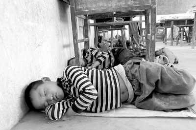山西芮城县六官小学的学生在教室的地上睡午觉。在教室午休是这里很多学校的传统,下午上课前都要午休1个小时,以便学生有充沛的精力上课,但要为学生午休腾出专门的宿舍,对农村小学校来说还是比较困难的。宝成摄