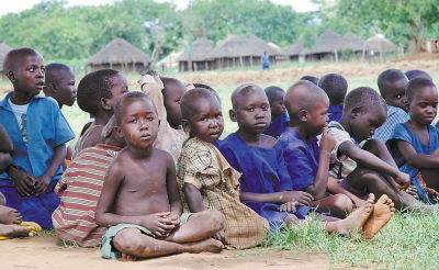 5月30日,在乌干达北部基特古姆的一所难民营中,许多儿童坐在草地上。当日,乌干达北部基特古姆行政区召开了呼唤和平儿童会议。乌干达北部20年的战乱造成140万人流离失所,其中80%是妇女和儿童。新华社记者卢娟摄