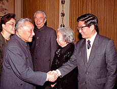 | ▲一九九一年二月十四日,邓小平同时任上海市常务副市长的黄菊亲切握手。 |