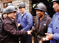 | ▲2004年1月3日,黄菊在贵州省林东矿务局黄家庄煤矿看望矿工。 |