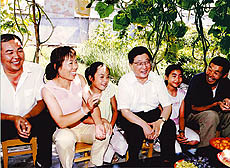 ▲2005年7月28日,黄菊同志在石河子市看望新疆生产建设兵团农八师职工。 |