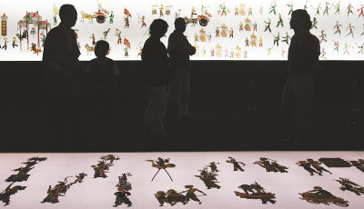 “影戏华彩——中国美术馆馆藏皮影珍品展”上,观众穿梭在不同风格的皮影作品中,体会着光影色彩的魅力。这是中国美术馆首次集中展出馆藏1.7万余件皮影中的一批罕见珍品。展览分两个阶段:第一阶段至6月13日,展出20件(套)皮影;第二阶段从7月10日至8月10日,在增补一批作品后继续展出。本报记者郑萍萍摄