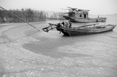 照片:周铁镇太湖沿岸的污染。本报记者周凯摄