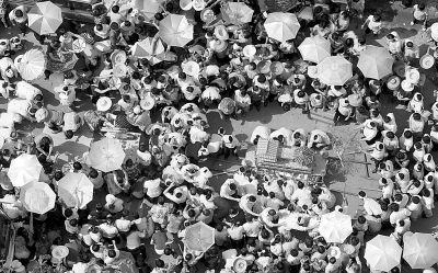 6月13日,在海南三亚商品街,一位老人去世。为了尽孝,她的儿子花费大量人力物力,为母亲举行了隆重而奢华的葬礼,轰动当地。据了解,送葬的7天中,每日死者家属大宴宾客,并给每个前来给死者烧香的来客派发20元钱。据悉,当天有1000人左右参加葬礼,几百辆送葬车沿路长长排开。送葬现场由于排场过大,一度出现交通拥堵。CFP供稿