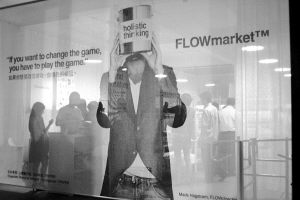 FLOWmarket心灵超市近日在上海开张。“心灵超市”内的商品,除了“勇气”、“信心”、“思考”之外,还有与自我有关的“让你没压力”、“安心零食”、“没有垃圾电邮”,与环境有关的“再生资源”、“空气清新”等。商品标价从10元至100元不等,商品除了装着海报的长筒有点分量外,其他所有商品都只是一个空包装而已。