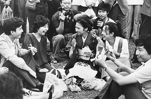 ▲9月28日,中日青年在南京玄武湖畔交流。