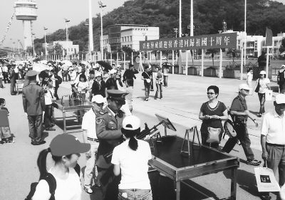 ②在“军营开放日”里,香港市民到营区参观。