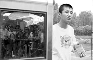 照片:6月7日,在北京101中学高考考点,一位考生在众多家长和老师的注视下走出考场。本报记者赵青摄
