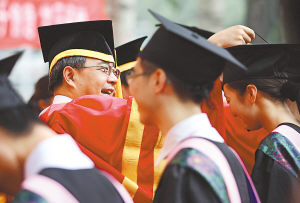 6月30日,团中央书记处第一书记、中国青年政治学院院长胡春华为毕业生拨帽穗。当天,中国青年政治学院2007年毕业典礼在该校校园内草坪举行。本报记者陈剑摄