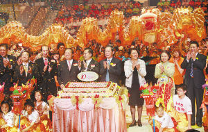 |    本报香港6月30日电(记者江华)今天下午,香港红磡体育馆,万名黑眼睛、黑头发、黄皮肤的青年用手中的鼓演绎了一场“龙声鼓舞”音乐会,用青春和激情隆重庆祝香港回归祖国10周年。    这场音乐会由香港特别行政区民政事务局、中华全国青年联合会、香港青年协会、香港康乐及文化事务署主办,来自内地、澳门、台湾与香港的10490名青年出席。    音乐会在“鼓舞金龙”中拉开帷幕。大金龙舞动腾飞,花式龙盈逸云游,用龙的精神凸显当代中华青年团结、乐观、进取的特质。香港流行歌手陈奕迅、陈慧琳等在龙的簇拥下演唱了《快乐男生》、《刮目相看》、《希望》。由TWINS率领的300多位舞蹈演员,用中国舞、爵士舞、踢踏舞表演了《我今年10岁了》。港澳地区荣获国际奖项的10名青少年的10架钢琴同台合奏,感染了现场的每一位观众。    在李克勤《龙的传人》歌曲声中,万名观众一齐敲鼓,用铃鼓、皮手鼓、双棍单皮鼓、布郎鼓及沙槌鼓,传递着共同创造美好未来的心愿。同时,万人击鼓也创造了一项新的吉尼斯世界纪录。    香港歌手容祖儿、古巨基在香港儿童合唱团的伴唱下,演唱了《千个太阳》、《挥着翅膀的女孩》、《明日恩典》、《爱得太迟》、《友共情》等励志歌曲。香港歌星谭咏麟的《香港始终有你》,将现场气氛带入和谐与温馨的境地。最后,100位10岁的小朋友与全场观众合唱《生日快乐》,将音乐会推向高潮。    中央统战部常务副部长朱维群,团中央书记处书记、全国青联常务副主席尔肯江·吐拉洪,香港特区政府律政司司长黄仁龙、立法会主席范徐丽泰、民政事务局局长何志平、全国人大香港特别行政区基本法委员会副主任委员梁爱诗、中央政府驻港联络办副秘书长王志民、香港青年协会总干事王艹易(“艹”和“易”为上下结构)鸣、全国青联副主席曾智雄等出席了今天的活动。    本次活动是全国青联与香港青年协会自2000年起举办的“龙舞长城”、“龙汇中华”、“龙声飞扬”、“龙耀浦江”中华龙腾系列活动的延续。活动旨在凝聚龙的传人,展示中华青年的蓬勃朝气,表达年轻一代同心同德、积极进取、振兴中华的豪情壮志。    照片:6月30日下午,《龙声鼓舞──万人青年音乐会》在香港红磡体育馆举行,来自内地、台湾、澳门和香港的万名青年激情相聚,共同庆祝香港回归祖国10周年。本报记者赵青摄     |