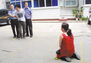 当天中午,民警正要将犯罪嫌疑人押往看守所时,该案件主犯马某的母亲情绪失控,跪倒在地。但是,法网无情,下跪并不能带来法律的宽恕。 吴暗彪摄