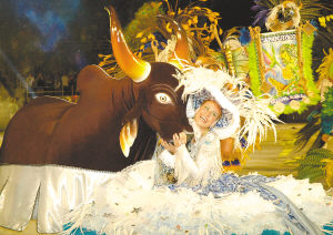 6月30日,在巴西亚马孙地区的帕林廷斯,狂欢者盛装参加一年一度的“博伊蹦巴”狂欢节。 新华社记者 陈威华摄
