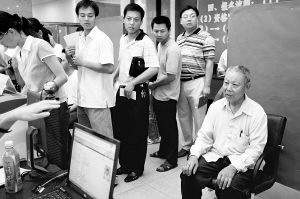7月9日,郑州市民王建邦来到司法局参加司法考试报名,因电脑软件设置的年纪上限是70岁,87岁的王老先生一时还报不上名。工作人员及时和北京司法部信息中心联系,答应晚上替王老报上名。据了解,王建邦是全国司法考试迄今年龄最大的考试者。小鹤摄