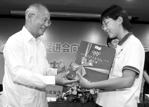 日前,作为奥林匹克教育示范学校的北京汇文中学的师生们获得了一份特殊的礼物——《国际奥林匹克委员会一百年——思想、主席、成就》一书。国际奥委会文化与奥林匹克教育委员会主席、北京奥组委执委、北京奥林匹克文化促进会会长何振梁先生将书赠送给学生代表。该书追述了国际奥委会百年辉煌的历程,图文并茂地描绘了现代奥运会的发展史。本报记者刘占坤摄
