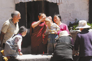 这张照片是今年5月23日我在参观西藏大昭寺时拍摄的。能被大昭寺僧人剃度的孩子会被认为是有佛缘的人,对藏民来说是一件很荣耀的事。