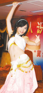 ▲7月16日,再有3个月就满16岁的台北市第一女子高级中学学生左祺在两岸青年联欢会上表演独舞。本报记者