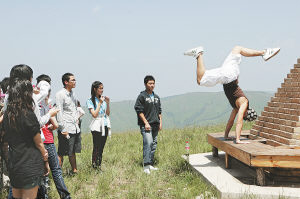 ▲7月16日,台湾青年在河北省崇礼县的群山之间游戏。实习生苏丹摄