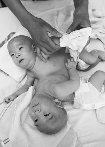 2007年3月15日,河北省廊坊市文安县东滩村一对双胞胎姐妹的降生本该给家人带来欣喜,但令人万万没有想到的是,这对姐妹竟是连体婴儿。目前,经过家人和医护人员的共同努力,这对名叫“文文”和“安安”的连体小姐妹终于具备了手术条件,将于7月22日在河北医科大学附属第一医院接受分离手术。
