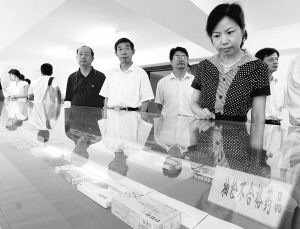 7月21日,安徽巢湖食品药品监督管理局假劣药品陈列室首次对市民开放。据了解,此次公开展览向市民展示了三大类假劣药品:假冒名厂药品、抽检不合格药品、其他假劣药品,共100多个品种。公开展览旨在让市民认识和辨别假劣药品,提高自我防范意识,维护自身健康。李远波摄