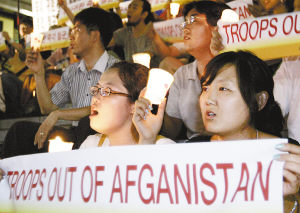 |    新华社喀布尔7月25日电(记者张海波 余智骁)阿富汗塔利班发言人优素福·艾哈迈迪25日说,塔利班当天处死了23名韩国人质中的一名男性人质。    艾哈迈迪说,杀死人质是因为阿富汗政府在谈判中没有表现出诚意,同时也是为了促使韩国方面答应塔利班提出的条件。他说,如果塔利班的要求在26日凌晨1时(北京时间26日4时30分)还得不到满足,他们还会处死更多的人质。    艾哈迈迪同时否认了有关塔利班已释放了8名韩国女性人质的报道。    阿富汗政府负责韩国人质事件谈判的官员证实,1名遭绑架的韩国人质当天已被塔利班武装杀害。    这23名韩国人是本月19日下午在阿富汗加兹尼省一条公路上被绑架的。    塔利班20日曾要求韩国政府立即撤出阿境内全部200名韩国士兵,24日又提出用8名韩国女性人质换回8名塔利班囚犯的要求。    去年以来,阿富汗安全形势恶化,阿境内频频发生外国人和本国人遭塔利班武装绑架的事件,一些人质惨遭杀害。    今年3月,塔利班绑架了一名意大利记者,阿政府通过释放5名塔利班重犯,使这名记者得以获释,但批评人士称,这一做法将助长塔利班的绑架之风。    照片:7月25日,在韩国首尔,人们参加烛光守夜活动,为在阿富汗被绑架的韩国人质平安回国祈福并要求韩国政府从阿富汗撤军。新华社/法新     |