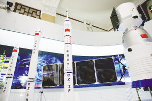 ▲“长征”运载火箭模型。本报记者李建泉摄