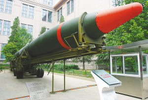 ▲第一代中近程地地导弹。本报记者李建泉摄