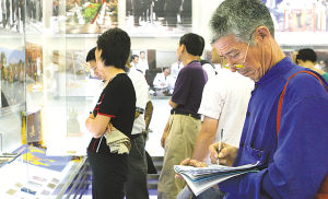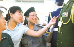 ▲工作人员向观众介绍07式新军服。本报记者郑萍萍摄