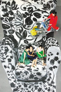 7月26日,北京宜家家居。消费者可以拿油漆刷给一个表面积为20平方米的“沙发”随便添上一笔。 国新摄