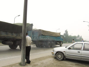 |    “这些车,每天都呼呼地从家门前过去,也不知道有没有人管。”近日,家住北京市顺义区牛栏山道口附近的一位大爷,指着冒着黑烟的一辆130汽车,对笔者说。他说,这些冒黑烟的汽车,不仅污染环境,对人的身体危害也大,应该有人来管。    “这地方,每天通过的车很多,尘土大,汽车再排放黑烟,让人怎么走?”    笔者在这里看到,由于刚下过雨,路边尘土比较厚,来往的汽车不断掀起路边的尘土。马路上,不时地驶过排放黑烟的大客车、大货车及农用车。这些车一来,路边等车的行人无不转身掩鼻,路边的树叶上也积了一层厚厚的尘土。    在北京郊区的其他路段,如京顺路、京密路上,笔者也发现了排放黑烟的汽车和农用车。    尾气排量超标的汽车怎么能上牌照?怎么就能上路?    笔者在北京某汽车销售店里,咨询一款尾气排放量超标的汽车时,售车人员告诉笔者,只需要多交5000元,就可以帮忙办理牌照。    “我们只管汽车技术方面的事情,汽车尾气排放的事要问环保局。”对笔者的提问,北京市公安局交通管理局的一名工作人员说。    北京市环保局宣传教育办公室的翟女士告诉笔者,北京市环保局每年都要对北京的汽车进行尾气年检、抽查,并在路上设点路查,一旦发现尾气排量超标的车辆,就禁止其上路。但由于现在车辆比较多,大货车、大客车等不按期进行年检的事情时有发生,还有一些车主用假牌照进行年检,当环保局对其检查时,又找不到真正尾气排放超标的车辆。由于环保局的职能有限,只能对经检查确实超标的汽车进行处罚。    据了解,汽车尾气中含有150~200种不同的化合物,其中对人危害最大的有一氧化碳、碳氢化合物、氮氧化合物、铅的化合物及碳的颗粒物。同时,汽车尾气不仅对人产生危害,对植物也有毒害作用,尾气中的二次污染物臭氧、过氧乙酯基硝酸脂,可使植物叶片出现坏死病斑和枯斑,乙烯可影响植物的开花结果。汽车尾气对甜菜、菠菜、西红柿、烟草的毒害更为严重,公路两侧的农作物减产与汽车尾气污染分不开。    “有些汽车由于维修、保养不当,在通过年检后也会临时发生故障。在汽车尾气排放量上,主要还得靠车主自律,如果群众发现尾气超标的车辆,可以拨打投诉电话12369,或对其拍照,将照片发到北京市环保局投诉举报”。    翟女士还介绍,一般来说,如果柴油车冒黑烟,其尾气排放一定已经超标了,但汽油车则要通过检测才能确定其是否超标。北京市环保局对外地的尾气超标车辆没有处罚权,唯一能做的就是在进京路口设置路查点,一旦发现尾气超标车辆,就对其进行劝返。但事实上,很多被环保局劝返的车辆,又通过其他小路进京,很难对其进行控制。    北京市环保局12369的接线人员告诉笔者,如果群众发现尾气排量超标的车辆,最好记住其车牌号码,以便让交管部门拦车后交给环保局检测。    普通汽车的尾气问题由环保局管理,但目前很多农用车排放黑烟的情况,该由哪个部门处理?“汽车的尾气排放归我们管,但农用车的尾气排放我们不管。”翟女士说。    “农用车的尾气排放问题不是我们管,好像没什么明确规定。”北京市农业局农机处的工作人员告诉笔者。    农用车的尾气排放问题究竟由哪个部门管理,笔者先后联系了北京市公安局交通管理局、北京市环保局、北京市农村工作委员会、北京市农业局农机处,始终没有得到一个肯定的答复。    照片:冒着黑烟的大货车行驶在京顺路上。张烨摄     |