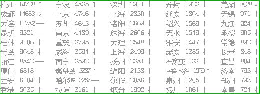 “西霞口•2007中国青年喜爱的旅游目的地评选”滚动排行榜