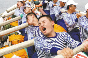 舢舨训练是世界各国海军的共同训练课目。“这是亲近大海,和它培养感情的最好机会”,一位舢舨队员告诉我。同时,它也是对学员意志、体力、协作能力以及海上生存能力的极限考验。