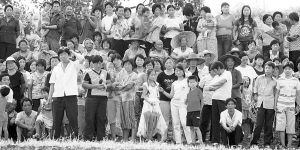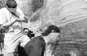 2007年7月1日,当地群众观看专家考察恐龙化石发现地。