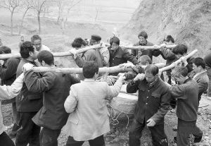 2006年2月25日,刘店乡群众帮助发掘单位抬出恐龙化石。
